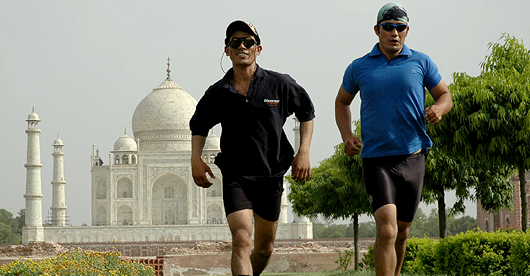 The Taj Mahal MarathonFor the second time the Taj Mahal Marathon will be run in September 2008.Starting from the sleepy village of Niyamat Pur, the Marathon route follows a good tarmac road through beautiful rural countryside and villages, before joining the main highway to Agra. The highway runs through fertile fields dotted with eucalyptus trees and mango groves, and past small bazaars and hamlets lining the side of the road. With 7 km to go, we turn from the main highway and onto the secondary Fatehabad road, where we run past rickshaws and bullock carts until a picture perfect view of the Taj Mahal unfolds over the final kilometres. The final straight takes us into the heritage garden of the Taj Mehtab Bagh (Moon garden) on the banks of the Yamuna River, with direct views of the Taj Mahal. Taj MahalThe Taj Mahal is Indias most celebrated monument and was built as a symbol of Sha Jahans eternal love for his bride Mumtaz. It was built over a period of 20 years by 20,000 labourers and craftsmen, the overall architectural design is as exquisite as the close up detail of semi precious stones inlaid into the marble surface.